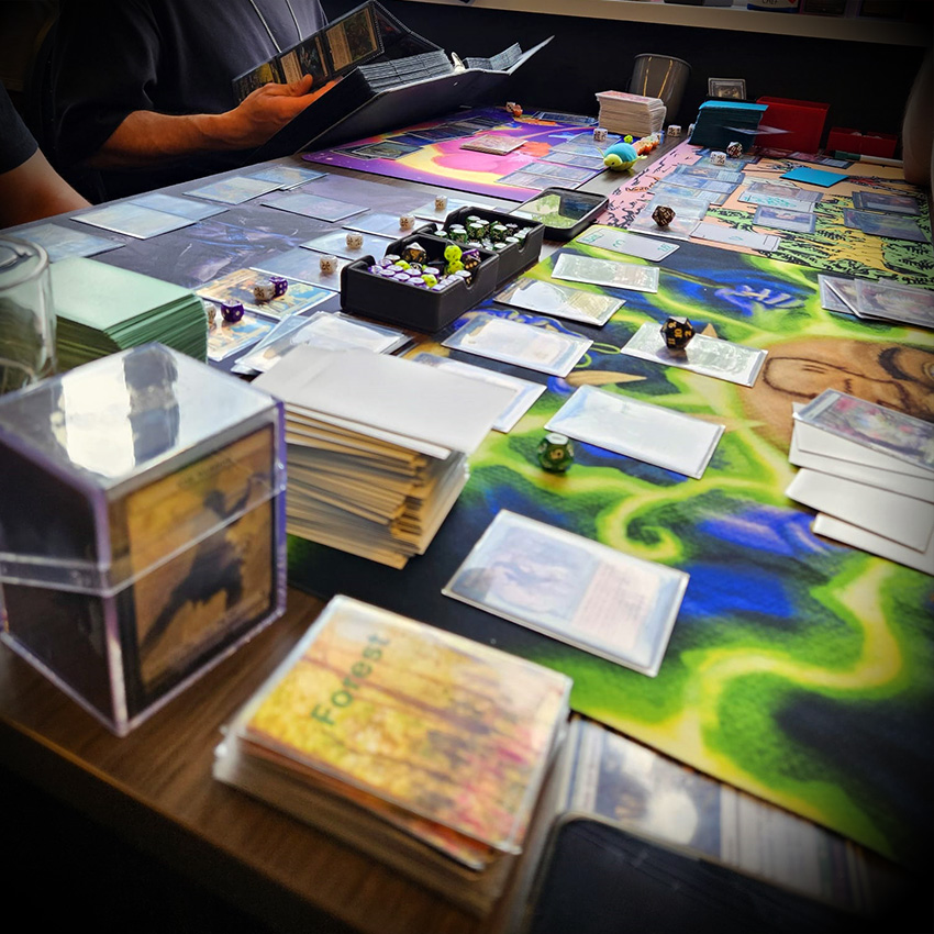 The Board-game-Room is well suited for casual play, Commander pods, deck testing, and friendly matches. It is intentionally not a tournament venue, but a relaxed space where players can focus on the game and the social experience.